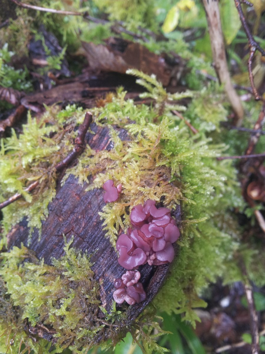 Ascocoryne sarcoides, champignon ascomycète, décomposeur du bois, sous forme sexuée ici
