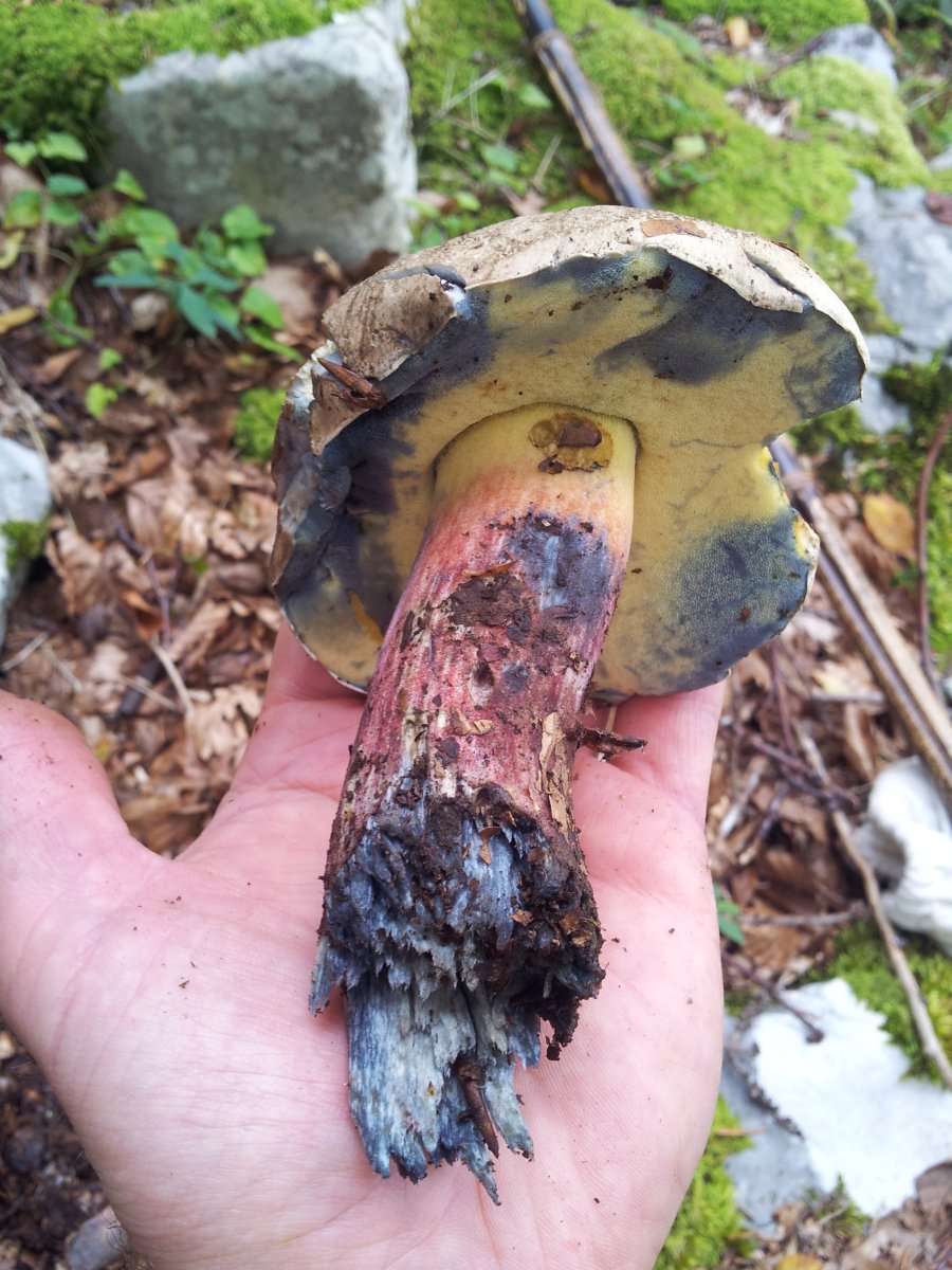 Bolet à beau pied (Caloboletus calopus) à chapeau clair, pied rouge vers la base, bleuissant, toxique !
