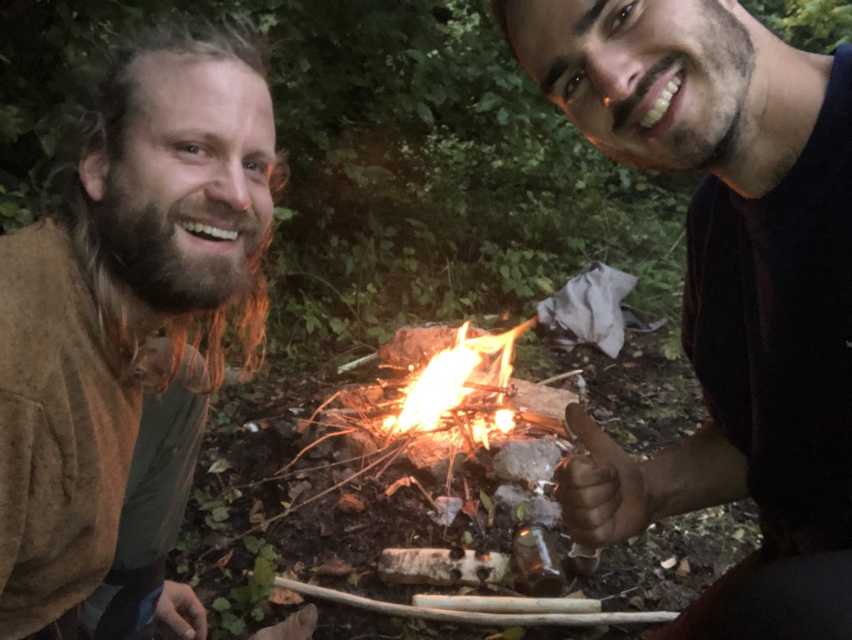 Feu au bord du Doubs avec Loic, un apprenant-ami