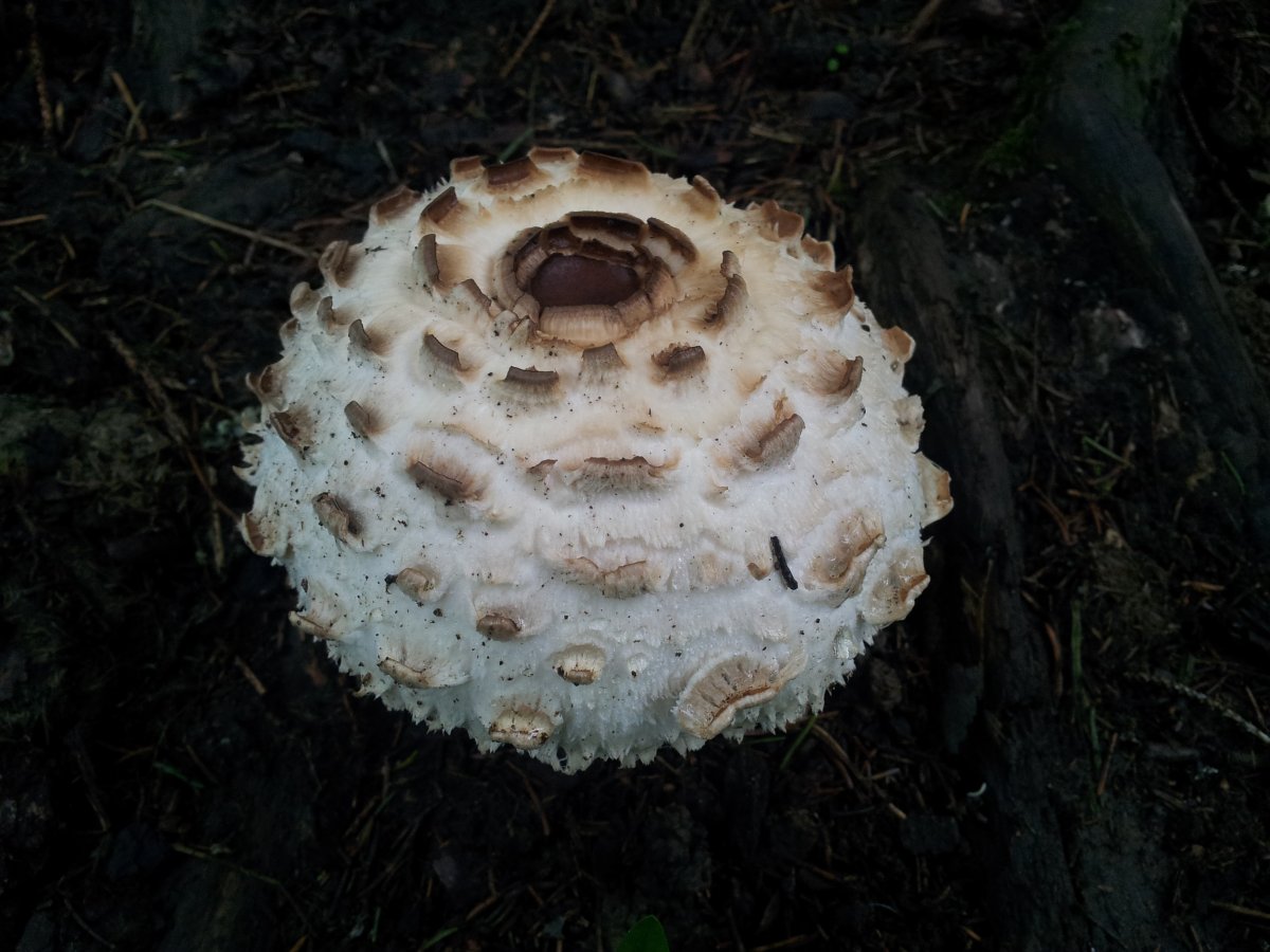Lépiote élevée ou Coulemelle, comestible, au pied d'une Aubépine